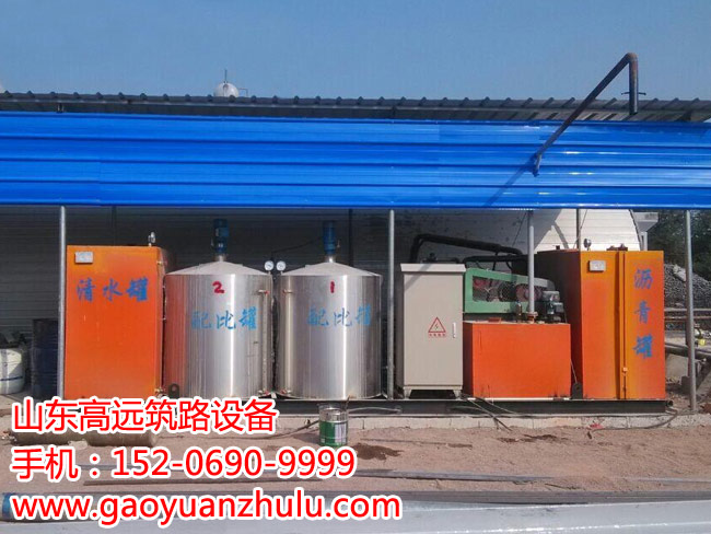 該產(chǎn)品采用導(dǎo)熱油加溫、手動控制,采用二臺調(diào)速電動圓弧齒輪泵,根據(jù)油水的比例,調(diào)節(jié)齒輪泵的轉(zhuǎn)速,解決油與水的配比問題,達(dá)到比例要求,操作直觀方便,油水通過泵的輸送進(jìn)入乳化機(jī)進(jìn)行乳化。該產(chǎn)品建造成本較低,生產(chǎn)場地需有瀝青加溫罐。