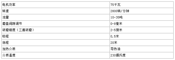 高速剪切均化磨技術(shù)參數(shù)(20T/小時(shí))