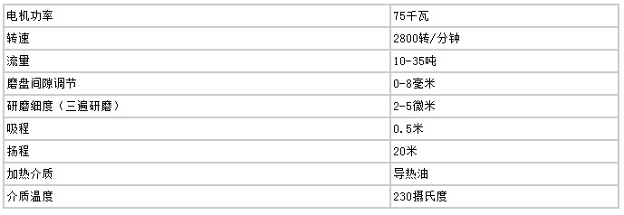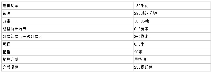 高速剪切均化磨技術參數(shù)(20T/小時)